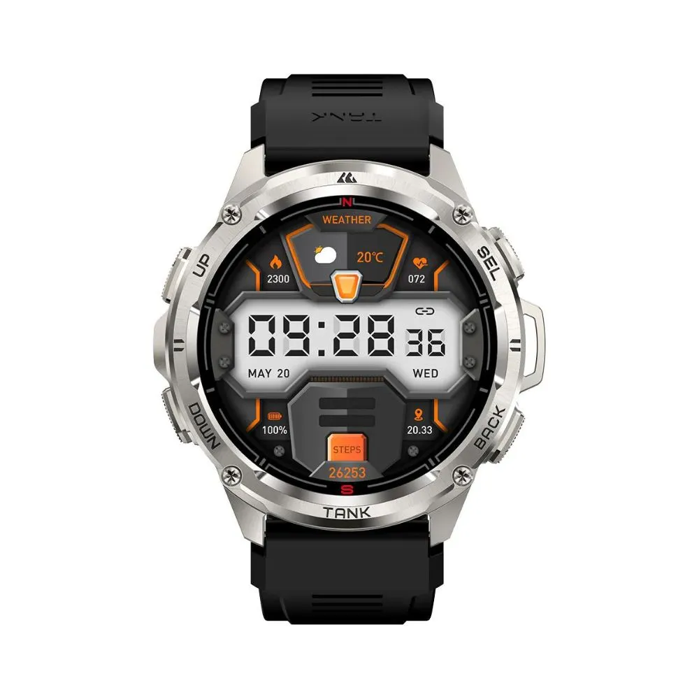 Features: Introducing the KOSPET TANK T3 ULTRA, a rugged smartwatch engineered to redefine durability and functionality in the wearable tech realm. Crafted with premium stainless steel and fortified with Corning® Gorilla® Glass 3, this timepiece is a testament to robustness. Whether traversing unforgiving landscapes or navigating bustling city streets, the TANK T3 ULTRA stands as an unwavering companion, impervious to the elements. In terms of display, the 1.43″ HD AMOLED screen, shielded by Gorilla® Glass 3, offers unparalleled clarity and resilience. This ensures that crucial data remains visible even in the most challenging environments, providing users with vital information at a glance during their adventures. Moreover, the TANK T3 ULTRA boasts military-level durability, having undergone rigorous testing to withstand the harshest conditions. From scorching deserts to icy terrains, this smartwatch remains steadfast, ensuring reliability wherever your journeys take you. Water enthusiasts will appreciate the TANK T3 ULTRA’s waterproof rating of 5 ATM and IP69K, allowing for worry-free diving experiences up to 50 meters deep. Meanwhile, swimmers can monitor their performance with the SWOLF score feature, providing insights into swimming efficiency. For outdoor enthusiasts, the TANK T3 ULTRA offers advanced navigation capabilities, including dual-band positioning and multiple satellite systems. With built-in compass and barometric altimeter features, users can accurately track their adventures, from cycling to hiking, with precise route mapping and performance metrics. Additionally, the smartwatch supports over 170 sports modes, providing comprehensive workout tracking and analysis via the KOSPET FIT App. With long-lasting battery life and seamless Bluetooth connectivity for calls and music playback control, the TANK T3 ULTRA ensures users stay connected and motivated throughout their active lifestyles. In essence, the KOSPET TANK T3 ULTRA redefines the smartwatch experience, combining unparalleled durability, advanced functionality, and long-lasting performance to empower users in their pursuit of adventure and fitness goals.