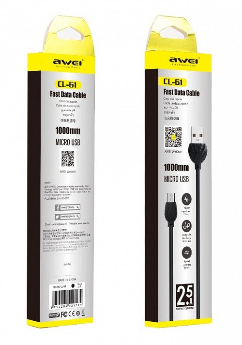Details and Specifications of Original Awei CL-61 Micro-USB Cable 1.0m 2.5A Black