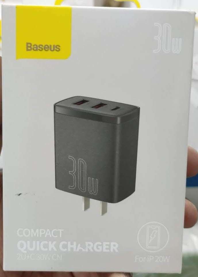 Details and Specifications of Original BASEUS Compact Quick Charger 2U+C 30W Type C PD Fast Charging 3 Ports USB