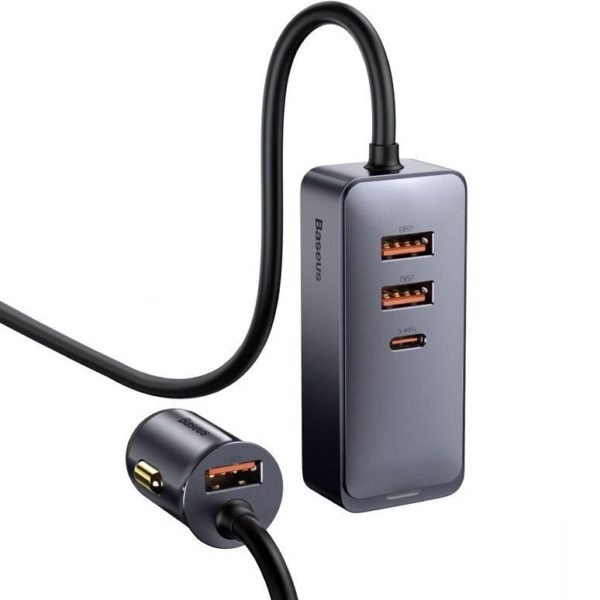 Original Baseus Share Together PPS Multi-port Fast Charging Car Charger With Extension Cord 120W 3U+1C