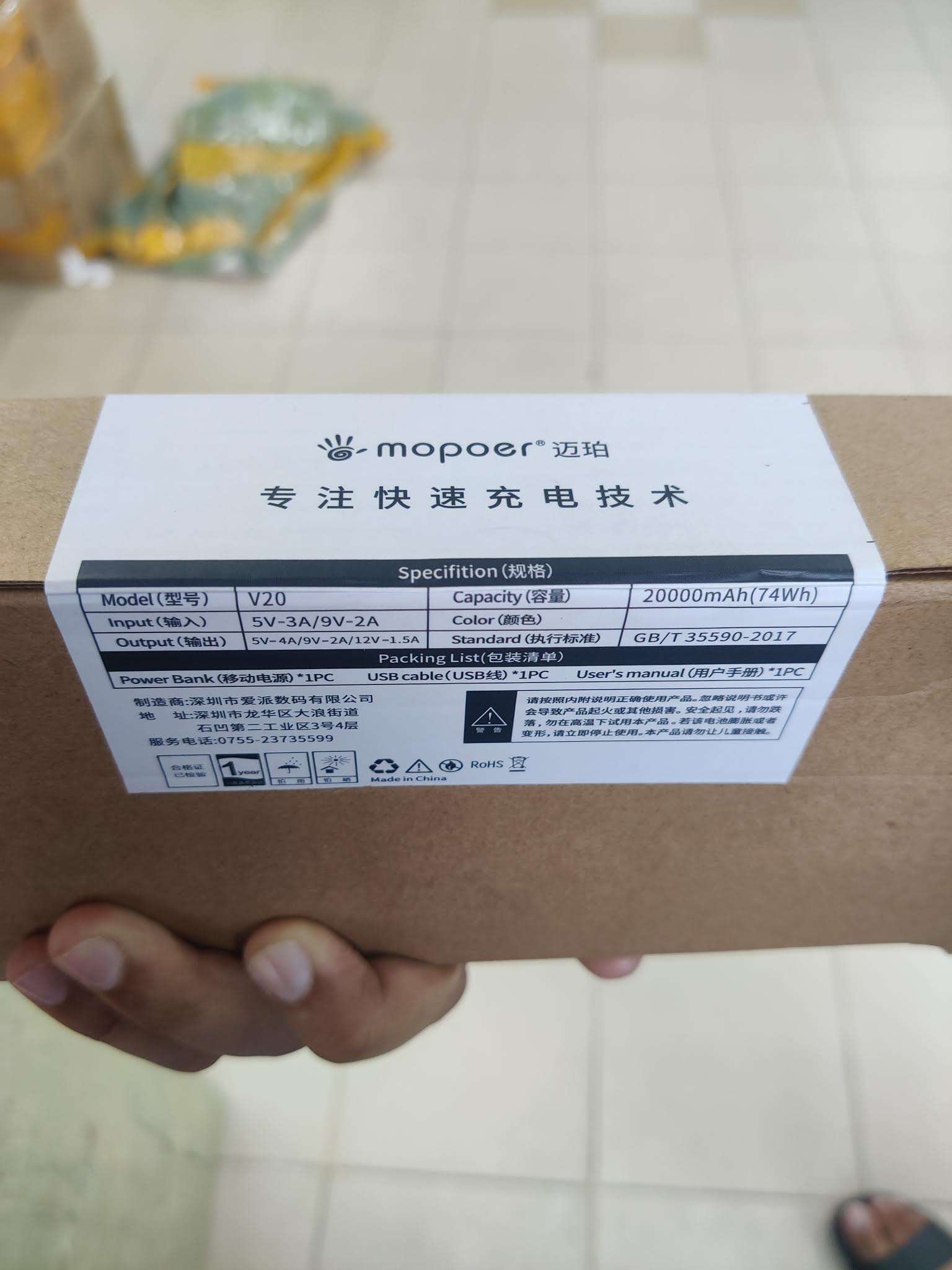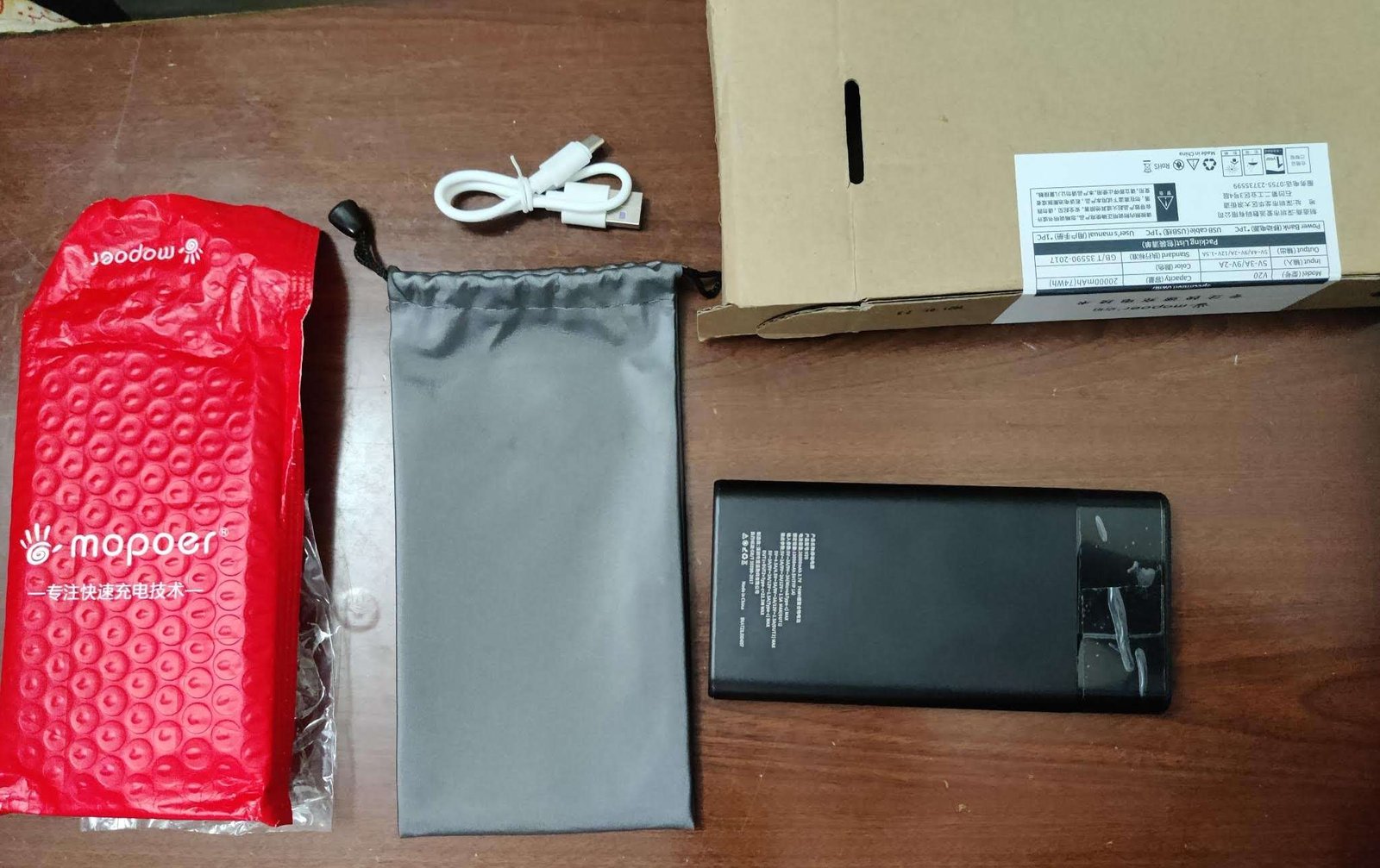 Details and Specifications of Original Mopoer V20 Dash Charging 20000mAh Power Bank