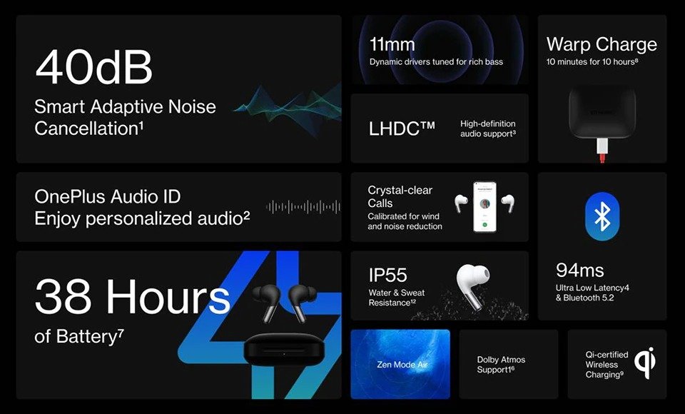 Oneplus Buds Pro True Wireless Earphones. Sound Made Smart. Balance powerful sound with pure silence. Hybrid Active Noise Cancellation keeps you in control of your audio. Enjoy crystal-clear calls and a truly personal music listening experience. Powered by worry-free battery life, savour a symphony of powerful features for on-the-go studio-grade sound.Smart Adaptive Noise Cancellation